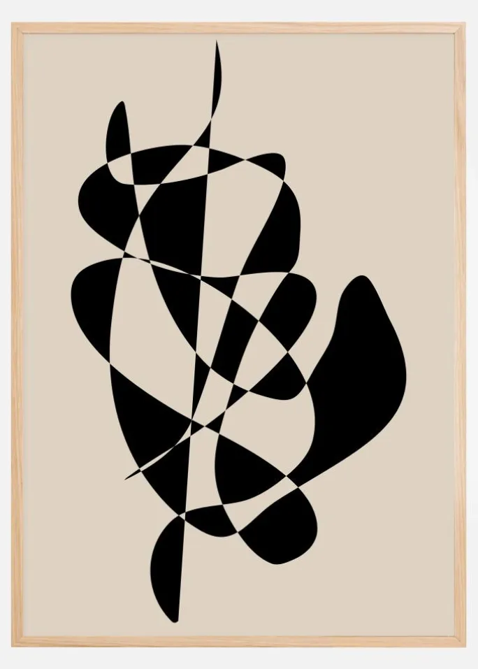 Denne plakat er en hyldest til modernistisk kunsts dristighed og enkelhed, en stil der er lige så aktuel nu som da den først tog form. Dynamikken i dette print kommer fra de indviklede sorte former, der slynger sig frit mod den lyse baggrund, hvilket skaber en følelse af bevægelse og spontanitet. Plakatens minimalistiske palet af sort mod en beige baggrund gør, at den straks tiltrækker øjet, hvilket gør den til et ideelt fokus i et minimalistisk eller monokromt interiørmiljø. Dens unikke sammensætning af linjer og kurver tilbyder en nutidig fortolkning af klassisk abstrakt kunst.