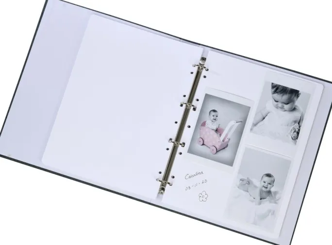 Den er udstyret med en stabil ringmekanisme, der gør det let at bladre mellem siderne og tilføje eller fjerne albumsider efter behov. Perfekt til dig, der ønsker at skabe et personligt fotoalbum, hvor du kan arrangere billeder præcis, som du vil.