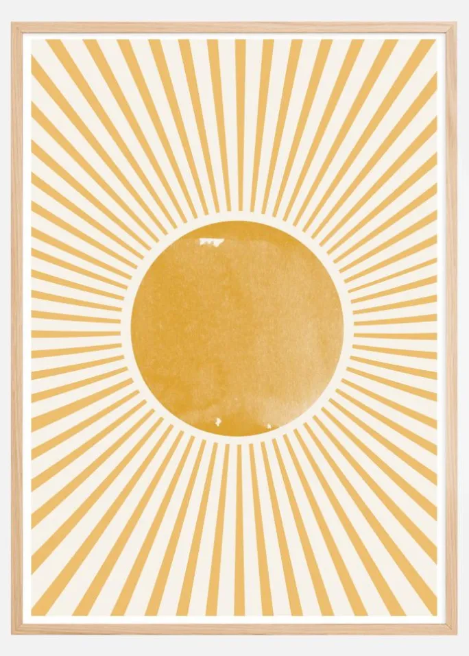 Dette tryk kan lyse op i ethvert rum og give et strejf af boho-chic til din indretning. Det er perfekt for dem, der ønsker at indføre et glimt af naturens skønhed og en følelse af lys i deres hjem. Dens universelle symbol for solen gør det til en velkommen tilføjelse i mange forskellige indretningsmiljøer, fra en stue til et yogarum eller et børneværelse.