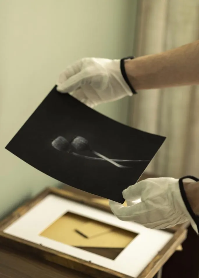 Derfor anbefaler vi vores tynde og enkle bomuldshandsker, som findes i flere forskellige størrelser, og som gør monteringen af dine billeder til en barneleg!