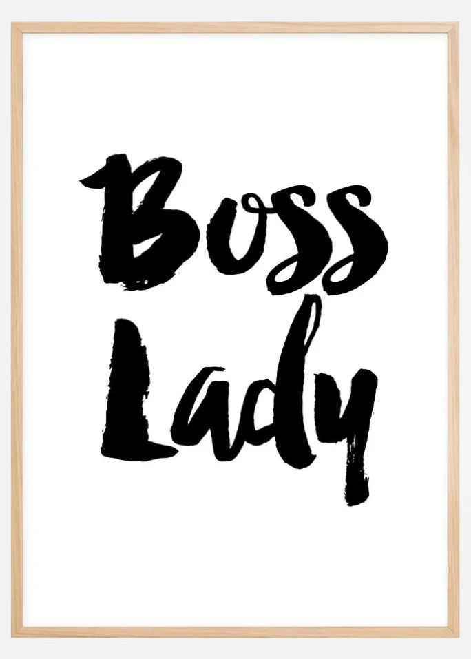 Lad være med at bekymre dig om, hvad andre tænker, og vær fuldt ud dig selv. En kvinde, der har kontrol, opnår respekt fra alle omkring sig og får jobbet gjort. Vær en Boss Lady! Denne tjusige plakat er hvid med teksten ”Boss Lady” skrevet med sorte, charmerende bogstaver. Det stilrene design er nemt at kombinere med dine favoritfarver på ramme eller passepartout. Match derefter med gardiner, puder eller andre indretningsdetaljer i samme farveskala! Vælg mellem 6 forskellige formater, afhængigt af hvor prints skal hænge.