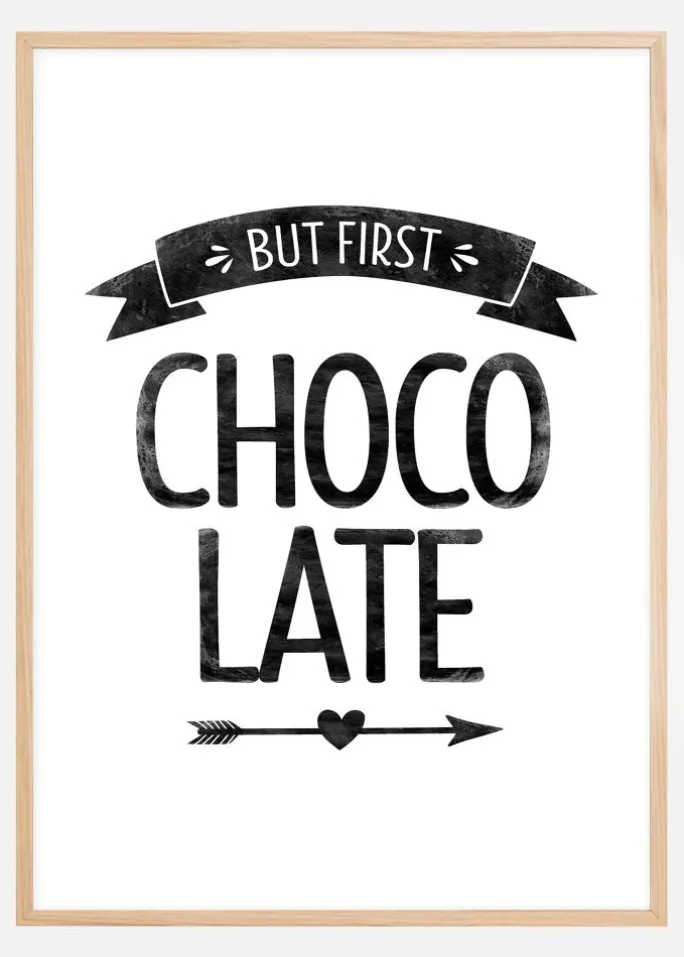 For at kunne holde til den fartfyldte hverdag har du brug for brændstof, og det er kun dig selv, der bestemmer, hvilken type brændstof! Hyld den vidunderlige chokolade med denne charmerende, sort-hvide plakat. Plakaten har et tryk med teksten ”But first chocolate” sammen med et banner og en pil, der går gennem et hjerte. Køkkenplakater bliver ofte meget fine sammen med sølvfarvede rammer, der matcher vask, blandingsbatteri og andre metaldetaljer, som ofte findes i et køkken. Da plakaten findes i 6 forskellige formater, finder du let en, der passer lige til dit hjem og din pengepung.