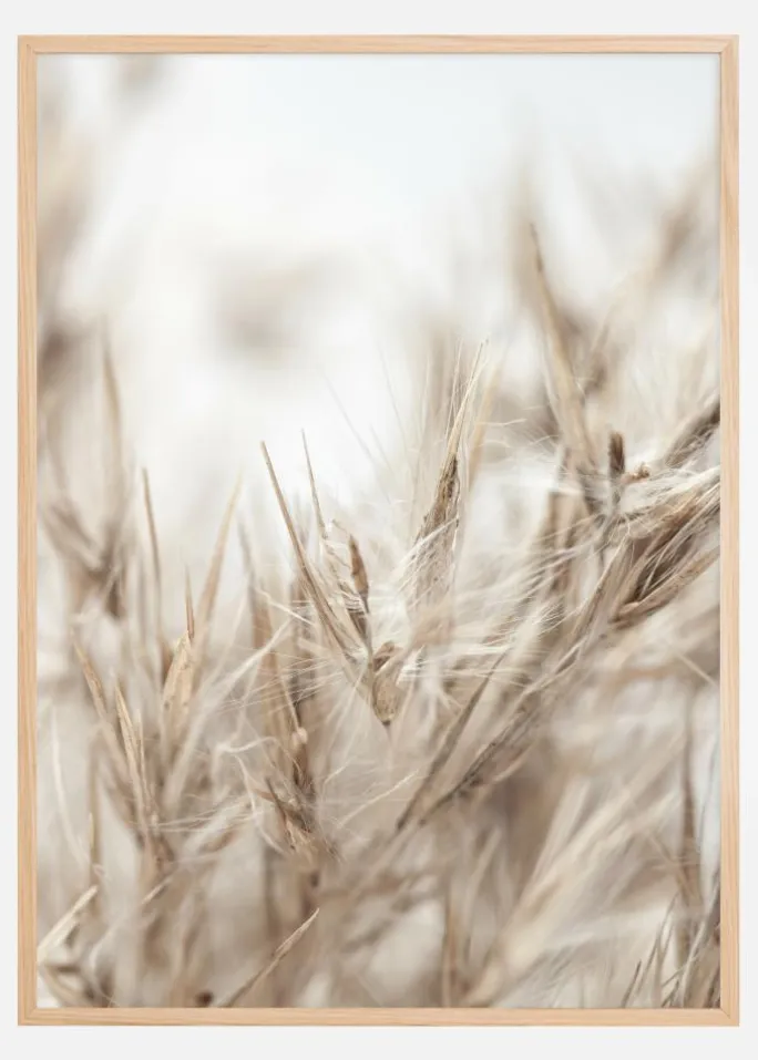 Denne plakat afgiver en naturlig og blød atmosfære, med en nærbillede af tørrede græsstrå i en palet af blegede neutrale toner. Dens subtile tekstur og organiske former tilbyder en følelse af ro og enkelhed, og bliver en smagfuld komponent i et hjem, der ånder fred og harmoni. Denne print er en omhyggelig påmindelse om naturens diskrete skønhed.