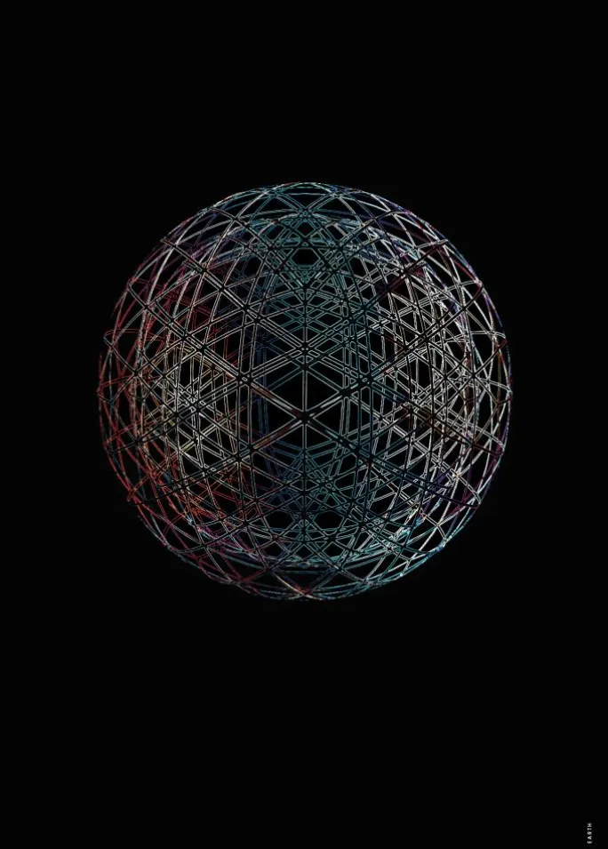 En mærkelig, men alligevel overbevisende plakat med en abstrakt jord, der hænger på en dyb sort baggrund. Jorden er en netkugle lavet af forskellige lyse farver, der ligner dem fra en olieforurening. Den glimter og skinner og skaber et fascinerende billede, mens den hænger i det sorte tomrum.