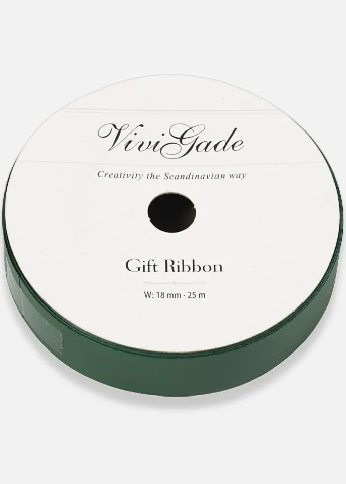 Gavebånd Grøn er et dekorativt bånd med en bredde på 18 mm og en længde på 25 meter. Perfekt til at give dine pakker og dekorationer et stilfuldt og farverigt touch.