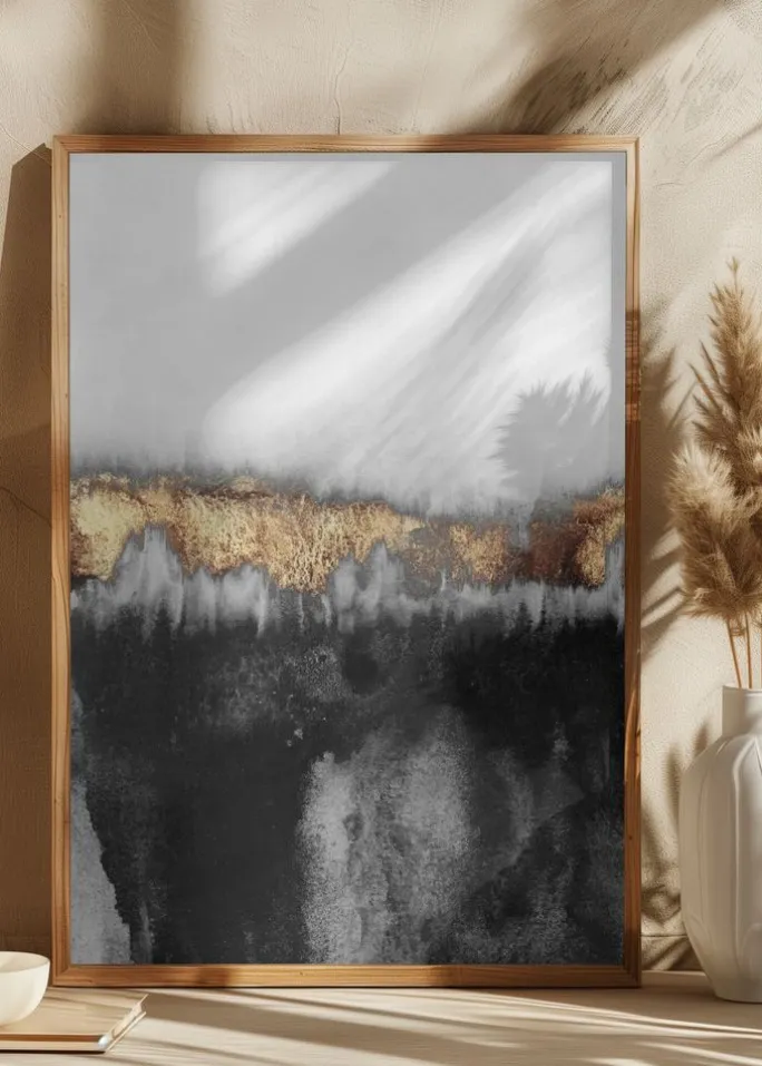 - MotivAbstrakt kunst / Akvarel / Guld & Sølv / Minimalistisk kunst