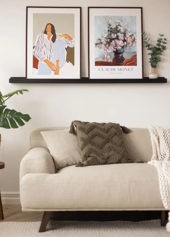 Vis og varier din vægkunst enkelt og flot med en elegant billedhylde! Denne billedhylde er fremstillet i MDF og er trendmæssigt sortmalet med en fin, halvblank overflade. Billedlisten har et stilrent design med lige, enkle linjer og en minimalistisk følelse. Hyldeplanet har en udfræset rille i midten, som fungerer som støtte til dine billeder og giver dem en flot vinkel, hvor de står skråt mod væggen.