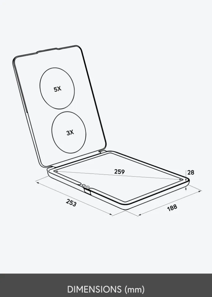- Spejlfladens størrelse18,5×25 cm