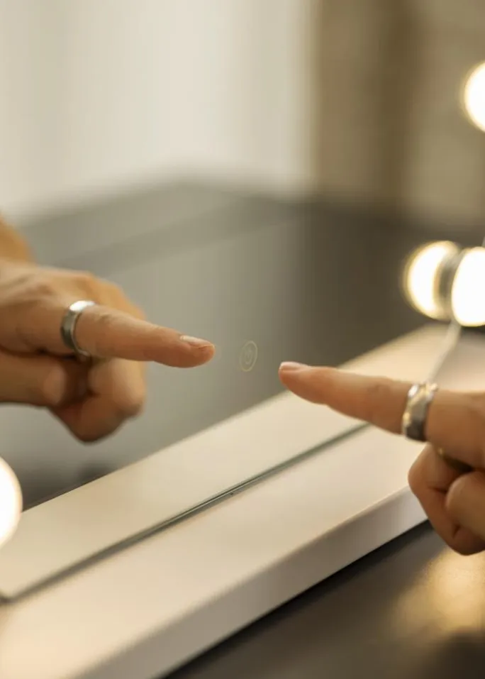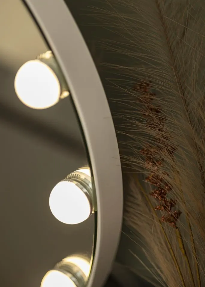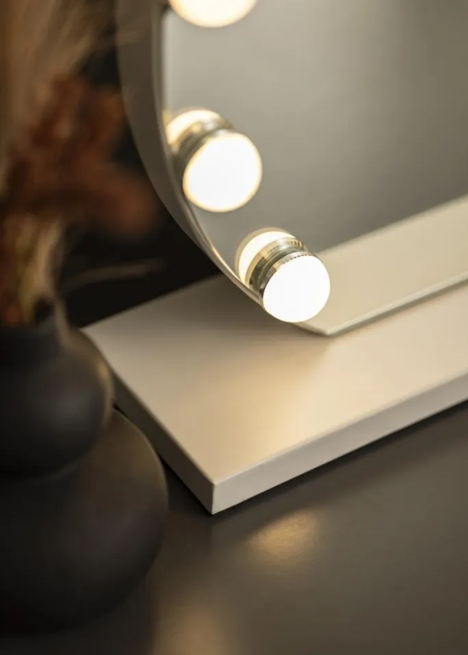 - Rundt makeupspejl i klassisk Hollywood-design