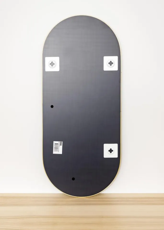 - Ovalt vægspejl med tynd messingkant
