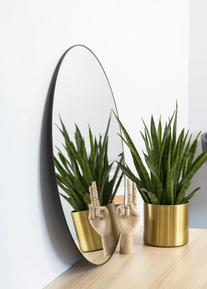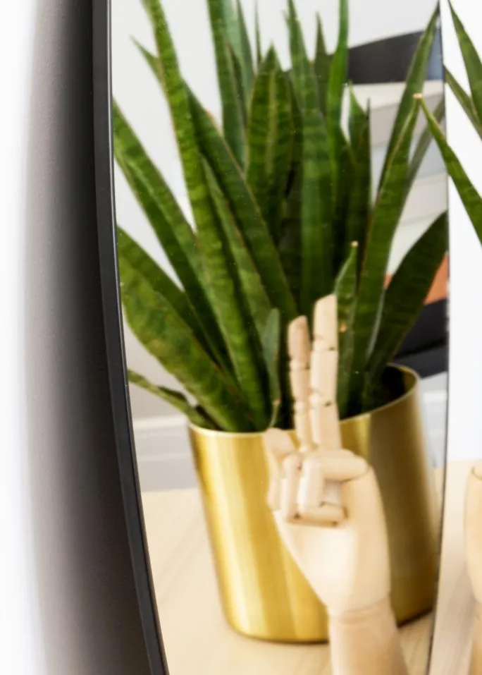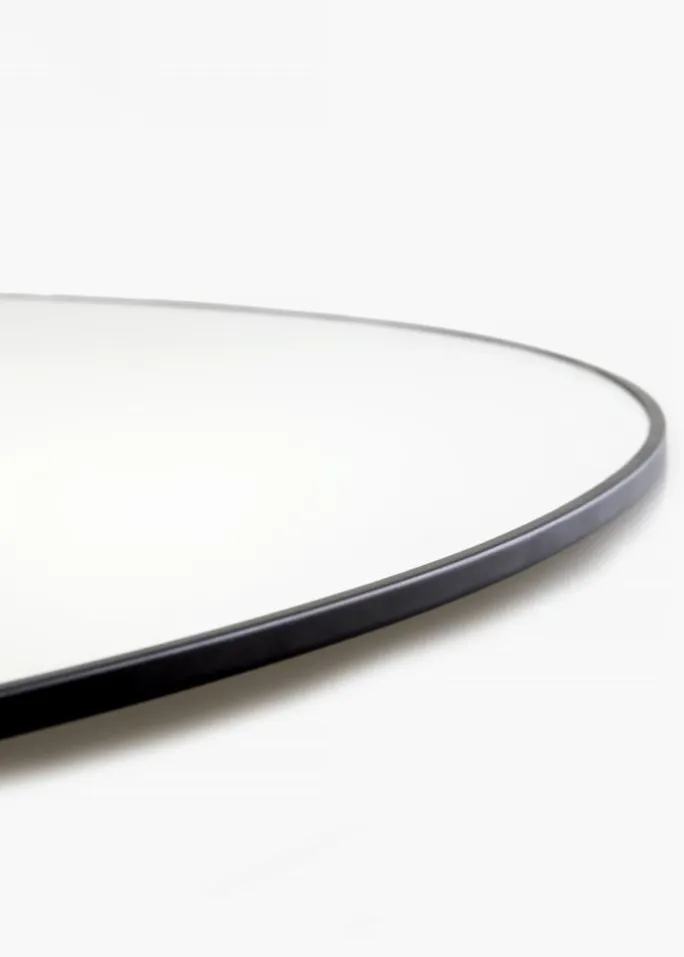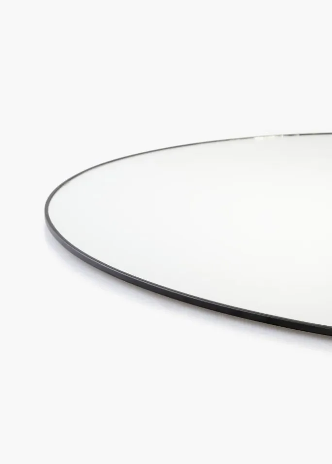- Rundt spejl med stilren sort metalkant