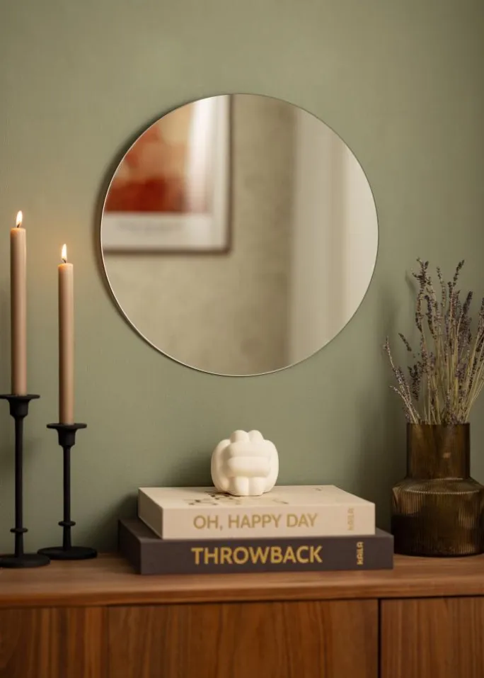 45 cm Ø rundt spejl som tilhører en serie af runde spejle fra KAILA. Fås i hele 13 størrelser, så du kan finde den størrelse der passer perfekt til dit rum. Spejlet er ekstremt tyndt, stilrent og passer ind i alle typer af rum og indretningsstile.