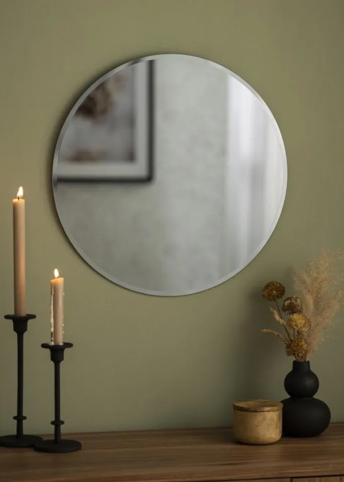 Spejlet er uden ramme, hvilket fremmer dets elegante form og farve. I stedet er kanterne prydeligt facetslebne, hvilket giver spejlet det, der lille ekstra.