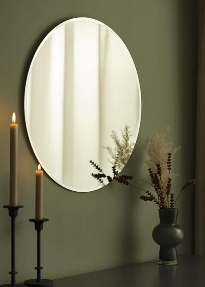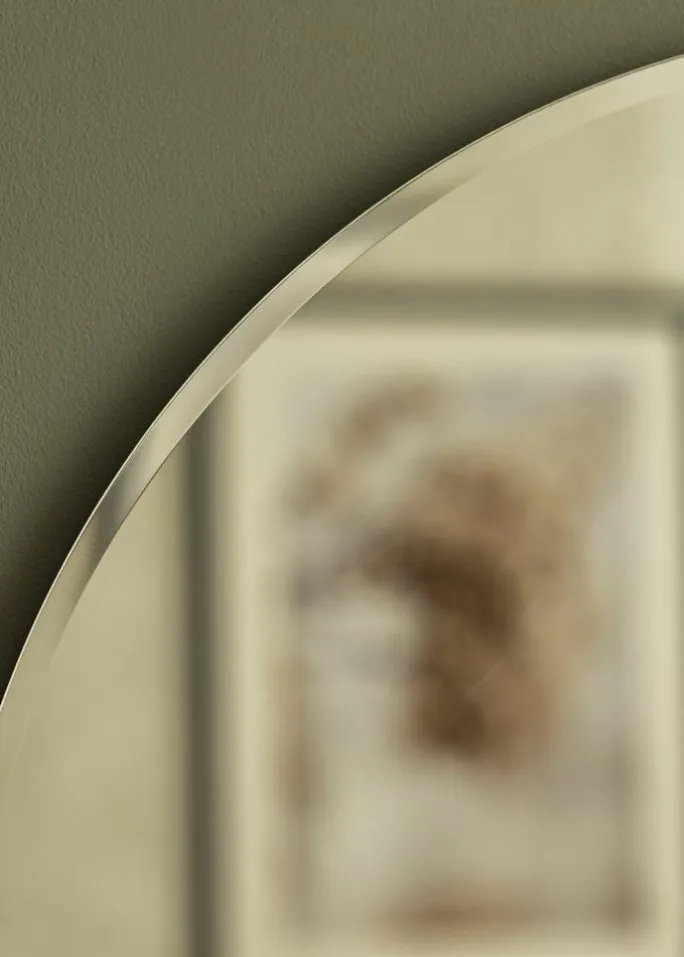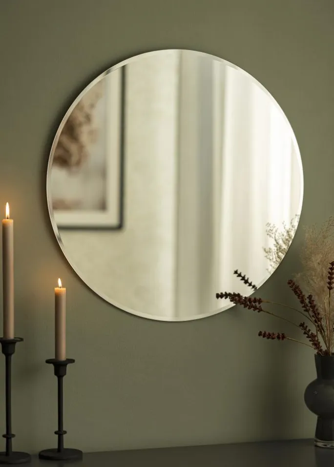 - Rundt spejl med flot facetsleben kant