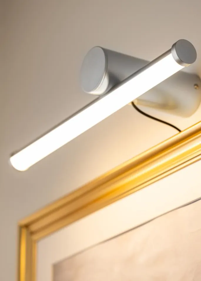 Dæmperfunktionen gør, at du nemt kan justere lysets intensitet for at passe til forskellige stemninger og anledninger. Denne justerbare belysning er ikke kun funktionel, men også stilfuld, og nem at installere. Med sin sølvfinish tilbyder den en tidløs og alsidig løsning, der løfter både små og store kunstværker til deres fulde potentiale.