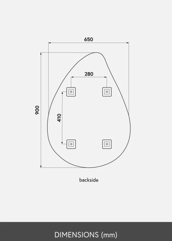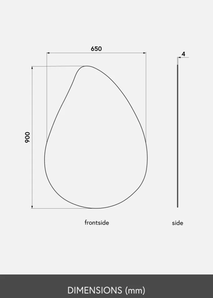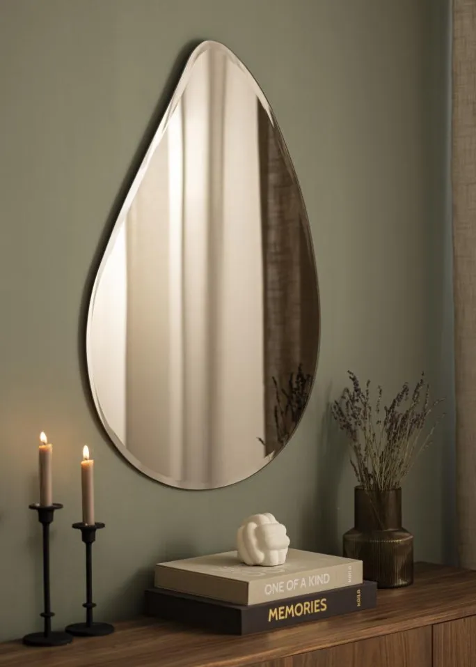 - Dråbeformet spejl med glas tonet i mørk bronze