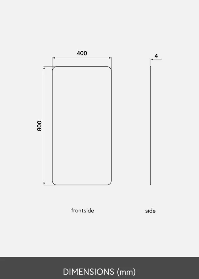 - Rektangulært spejl med afrundede hjørner