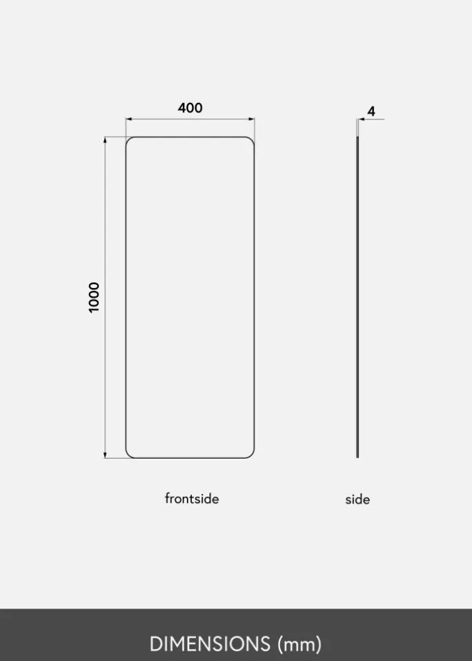- Rektangulært spejl med afrundede hjørner