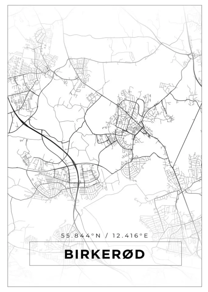 Kort – Birkerød – Hvid Plakat (21×29.7 cm (A4))