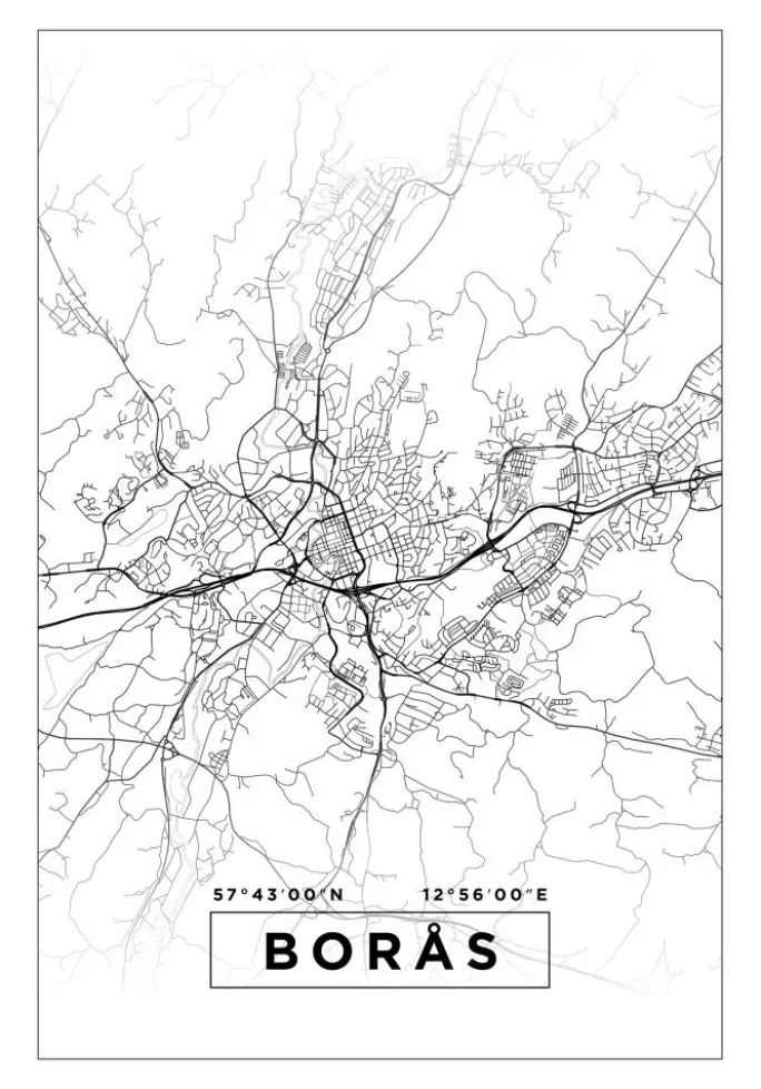 Kort – Borås – Hvid Plakat (21×29.7 cm (A4))