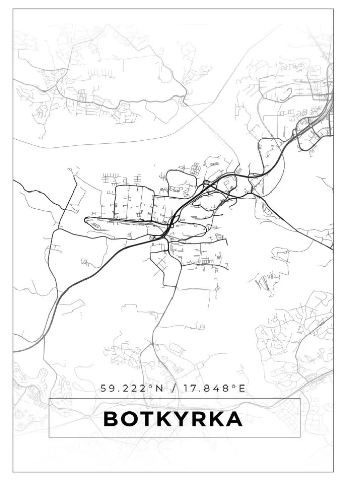 Kort – Botkyrka – Hvid Plakat (21×29.7 cm (A4))