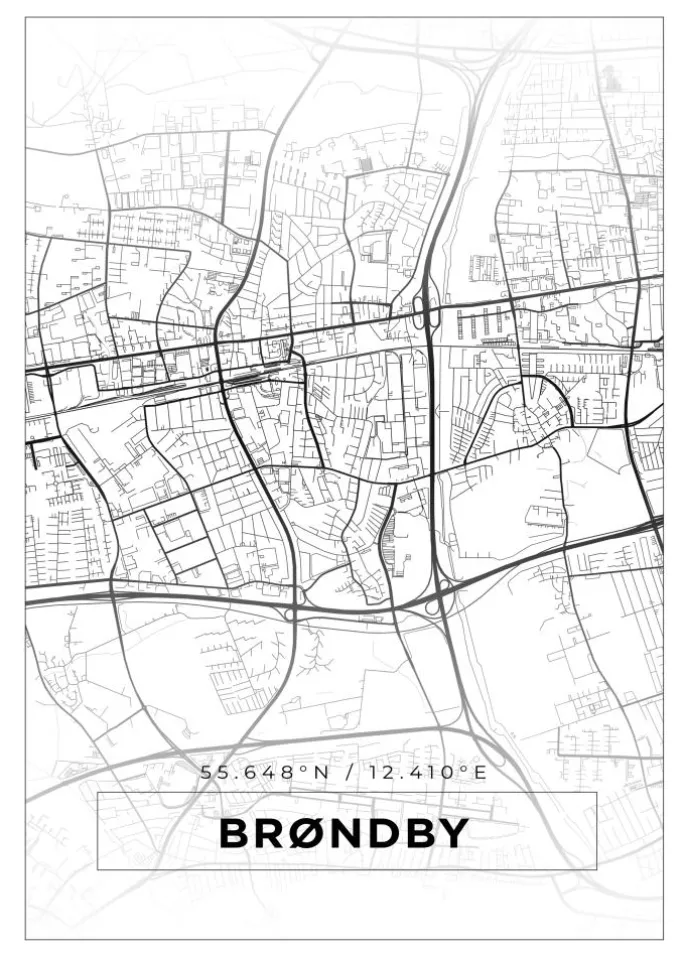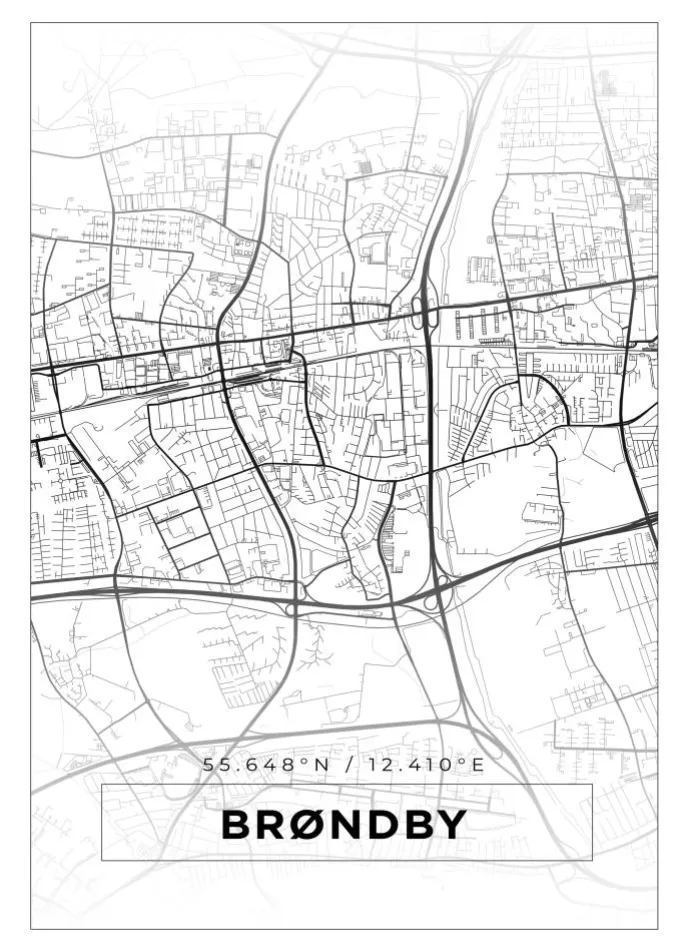 Kort – Brøndby – Hvid Plakat (21×29.7 cm (A4))