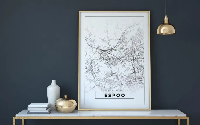 Gør væggen super fin og rummet hyggeligt med denne flotte plakat med et kort! Kortet har et moderne design med minimalistiske linjer samt byens navn og koordinater. Vælg mellem 3 forskellige farver og hele 8 forskellige størrelser!
