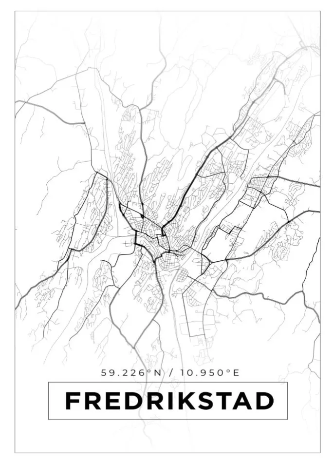 Kort – Fredrikstad – Hvid Plakat (21×29.7 cm (A4))