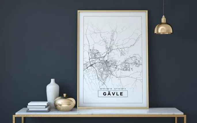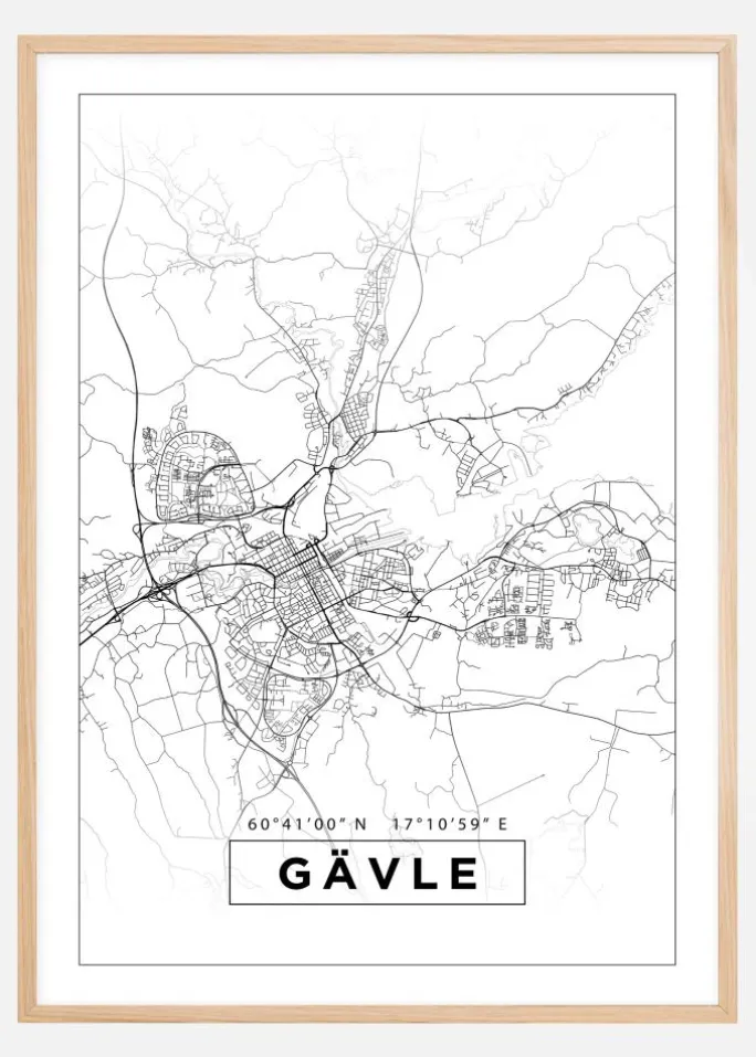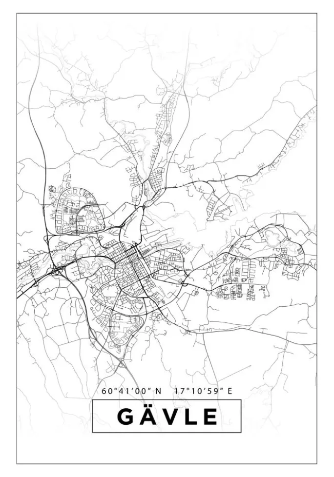 Kort – Gävle – Hvid Plakat (21×29.7 cm (A4))