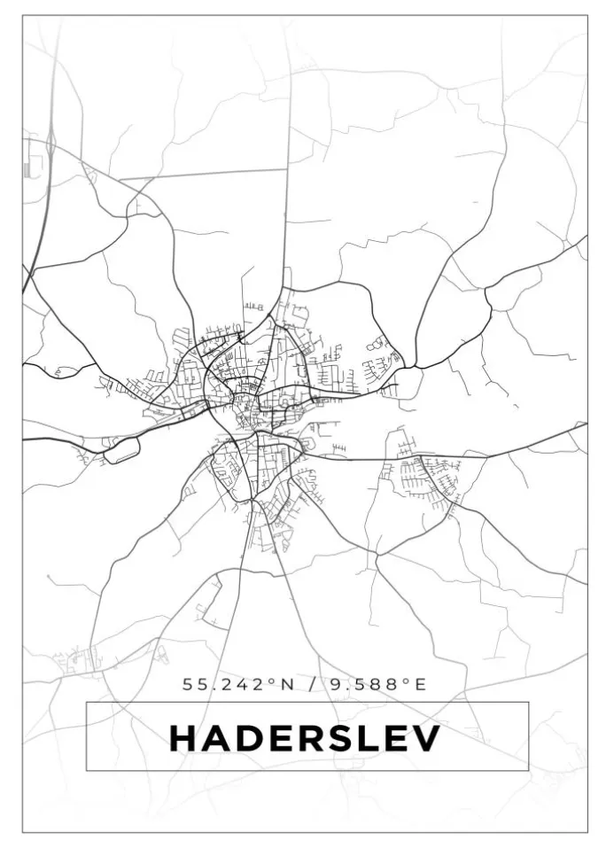 Kort – Haderslev – Hvid Plakat (21×29.7 cm (A4))