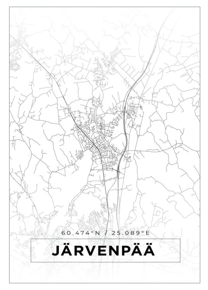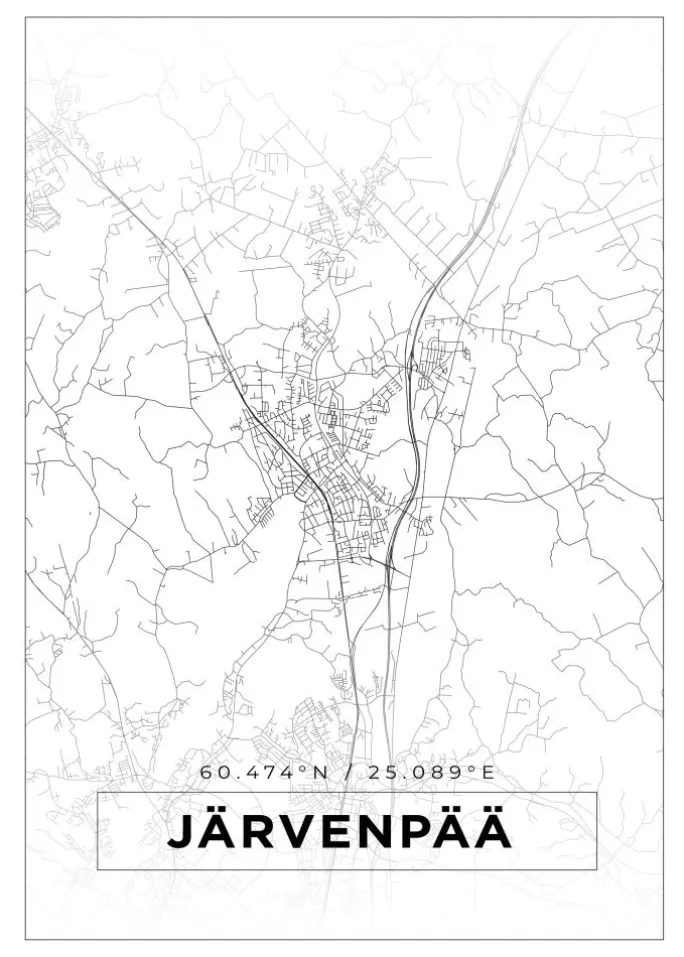 Kort – Järvenpää – Hvid Plakat (21×29.7 cm (A4))