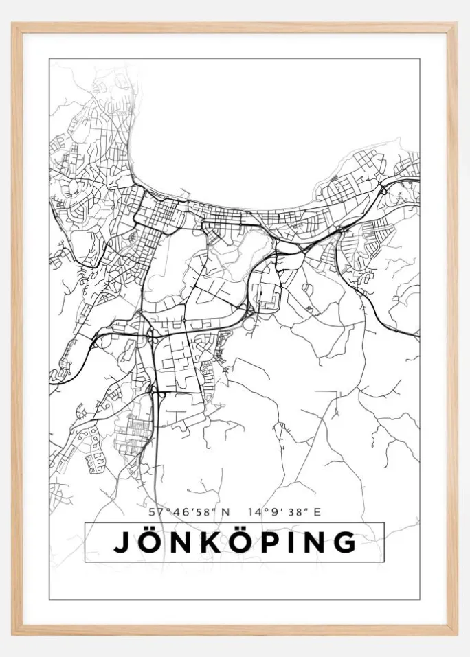 Kort – Jönköping – Hvid Plakat (21×29.7 cm (A4))