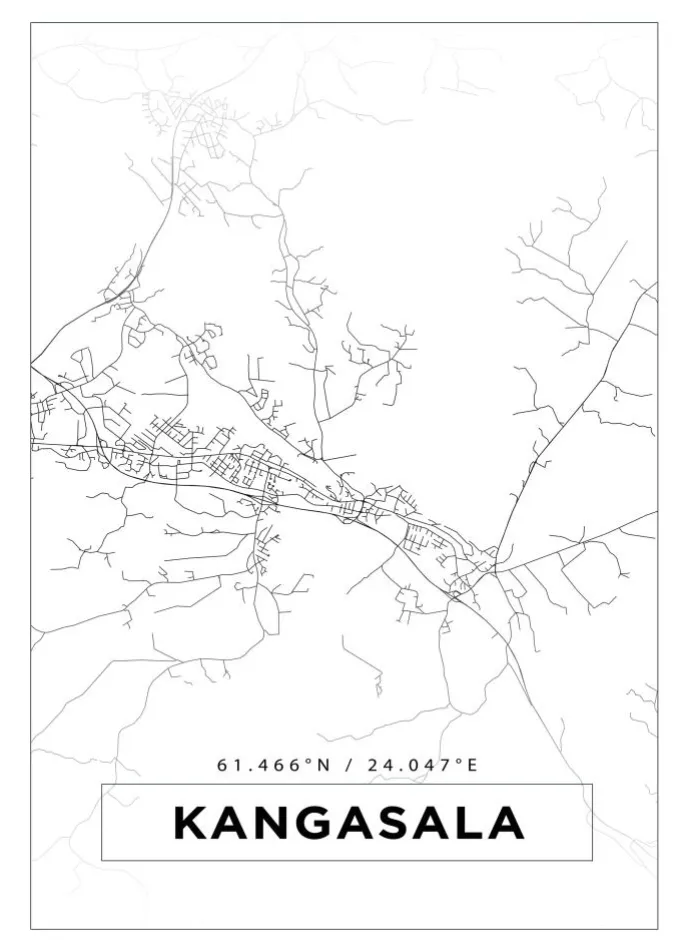 Kort – Kangasala – Hvid Plakat (21×29.7 cm (A4))
