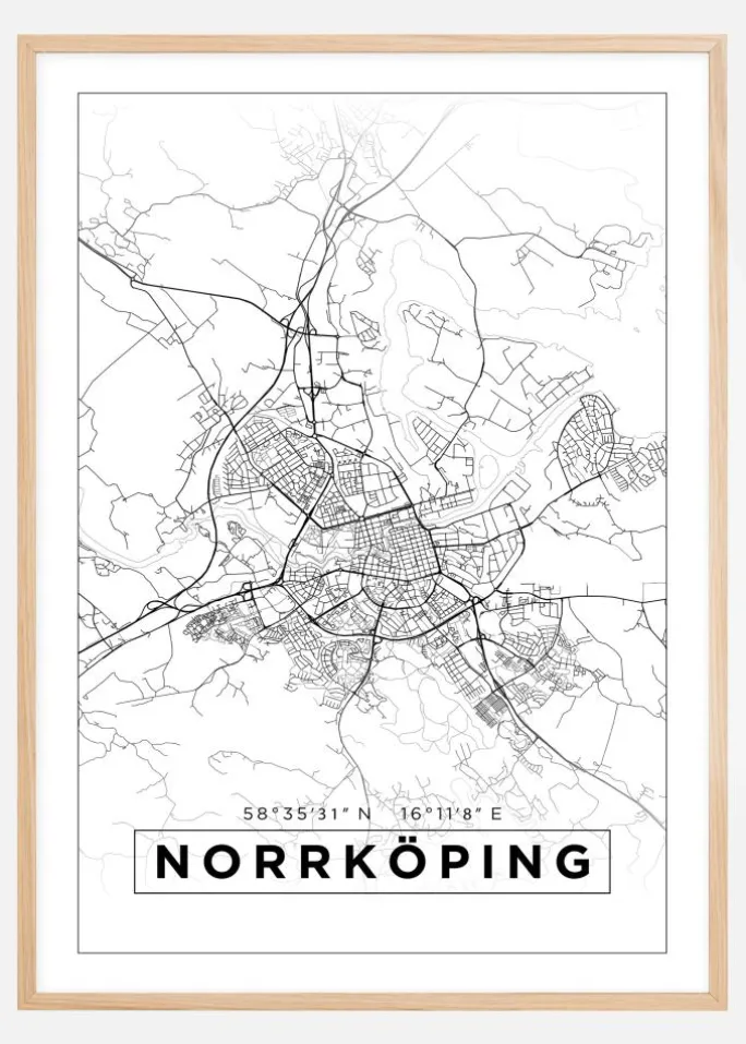 Kort – Norrköping – Hvid Plakat (21×29.7 cm (A4))