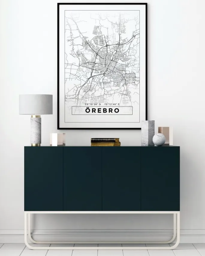 Kort – Örebro – Hvid Plakat (21×29.7 cm (A4))