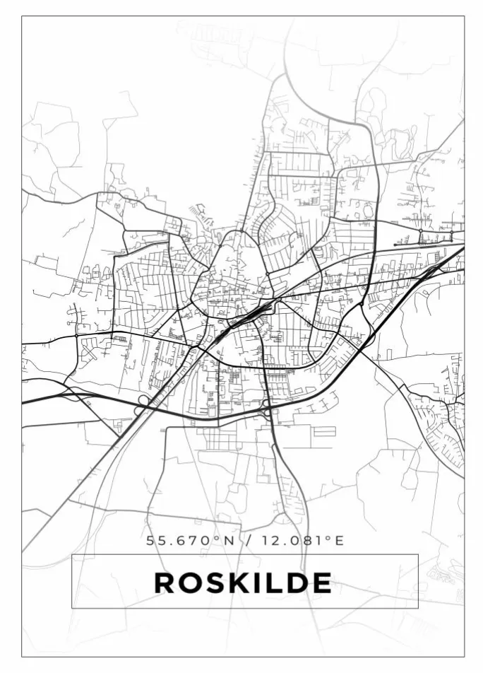 Kort – Roskilde – Hvid Plakat (21×29.7 cm (A4))