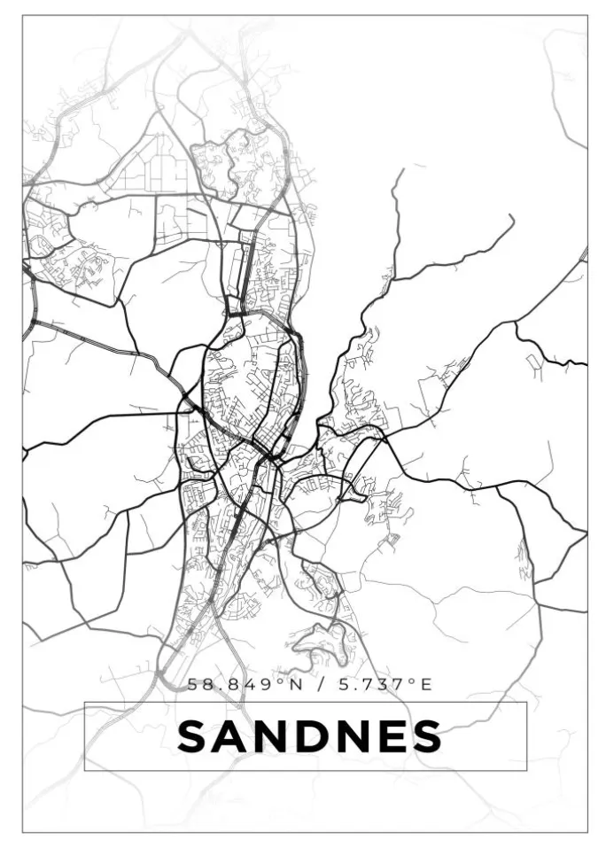 Kort – Sandnes – Hvid Plakat (21×29.7 cm (A4))