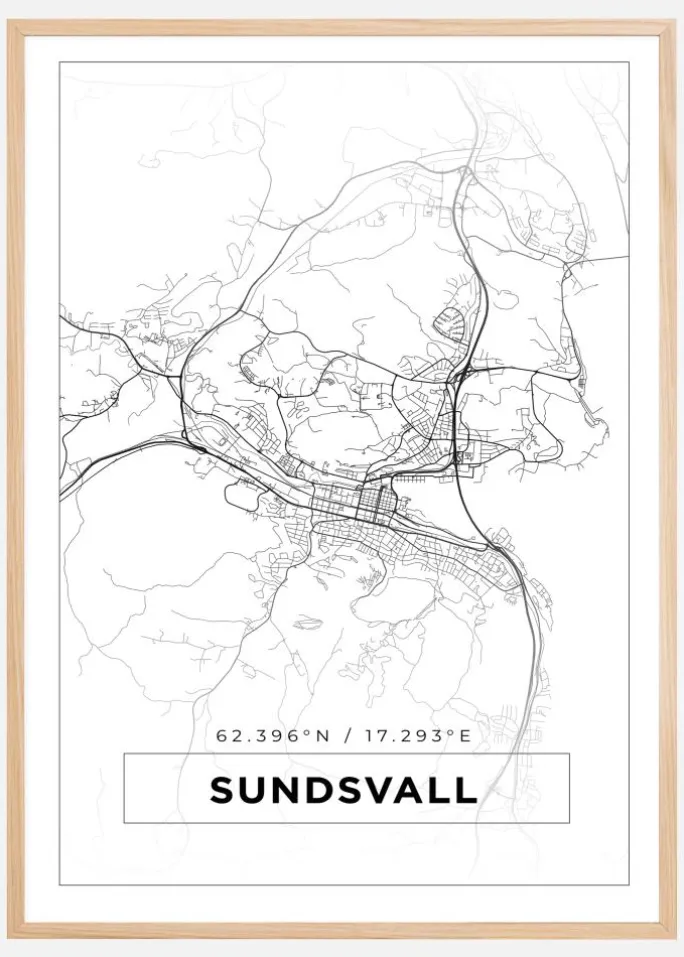 Kort – Sundsvall – Hvid Plakat (21×29.7 cm (A4))