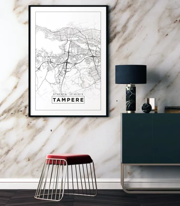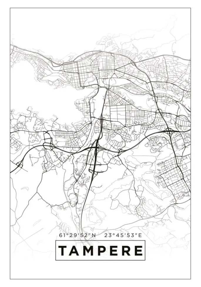 Kort – Tampere – Hvid Plakat (21×29.7 cm (A4))