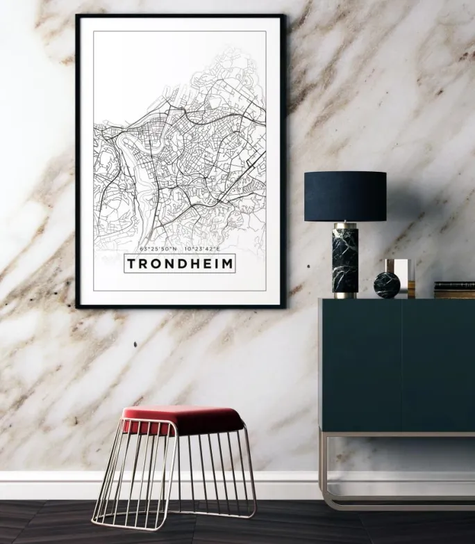 Kort – Trondheim – Hvid Plakat (21×29.7 cm (A4))