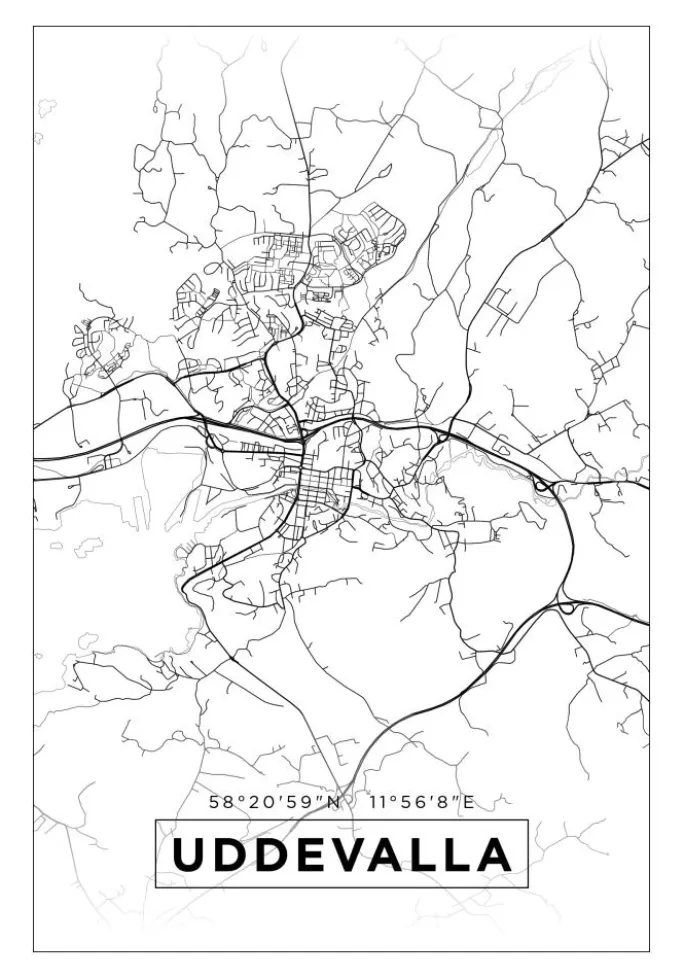 Kort – Uddevalla – Hvid Plakat (21×29.7 cm (A4))
