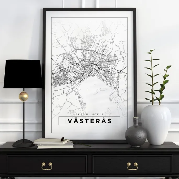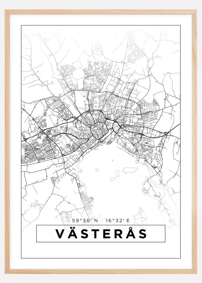 Kort – Västerås – Hvid Plakat (21×29.7 cm (A4))