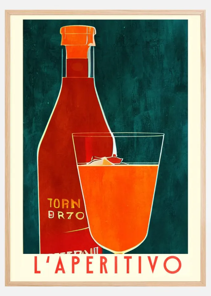 Oplev vores eksklusive samling af moderne plakater, der forhøjer ethvert rums æstetik. Denne særlige plakat præsenterer en stiliseret illustration af en flaske og et glas, perfekt til at indføre en følelse af sofistikation og livlighed i dit køkken eller spisestue. Motivet har en dristig komposition med retrocharme, hvilket gør det til et ideelt valg for dem, der sætter pris på klassisk design med et moderne twist.