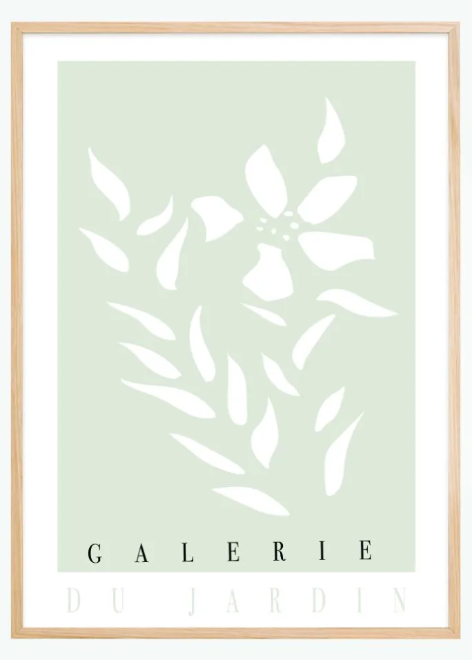 Denne sofistikerede og minimalistiske plakat fra Galerie du Jardin fremhæver skønheden i enkelhed. Motivets består af en stiliseret, hvid blomst mod en beroligende grå baggrund, hvilket skaber en harmonisk og afslappet atmosfære. De hvide blade står ud mod den grå tone, hvilket giver en ren og moderne følelse som er perfekt for alle, der sætter pris på diskret og elegant design.