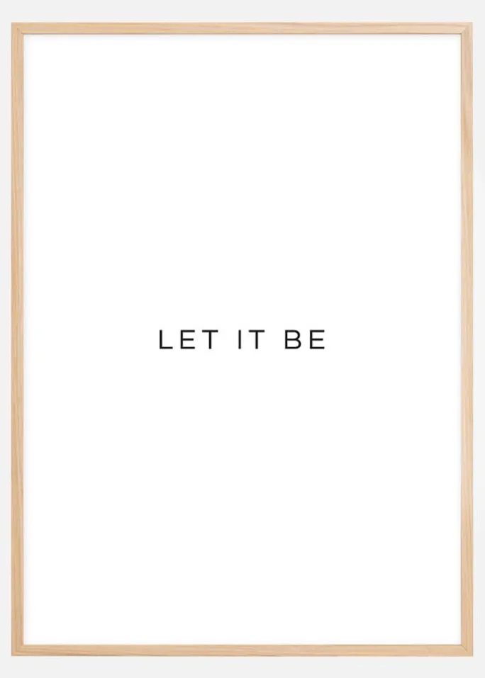 Et enkelt, men effektivt motivationsbillede med det engelske motto ” Let it be”. Den enkle sorte skrift på en hvid baggrund giver et meget klart budskab. Sæt dette print på din væg, og glem alle verdens bekymringer.