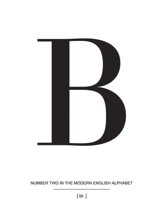I enkelheden findes det smukke, og det beviser denne stilrene plakat med bogstavet B i sort mod en hvid baggrund virkelig. Printet har en flot typografi og bør komplementeres med andre bogstavsplakater fra samme serie for at skabe en trendy og smuk billedvæg. Vælg dine favoritplakater med bogstaver på og vælg blandt vores store sortiment af kvalitetsrammer, så er det bare at lade fantasien flyde derhjemme på væggene.