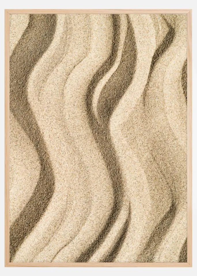 Denne plakat er en påmindelse om naturens enkle skønhed, perfekt til at skabe en fredfyldt og jordnær atmosfære i dit hjem. Den organiske rytme og balance, der findes i mønstrene, giver et beroligende element til ethvert miljø og inviterer til stunder af refleksion og meditativ stilhed. Lad disse sandlinjer blive en del af dit rum og bring med sig en bid af naturens stille dialog.