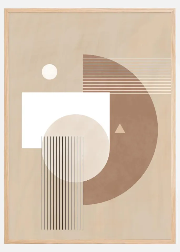 Dette værk bruger en sofistikeret blanding af beige, hvid og brun til at skabe en visuel harmoni, der er både indbydende og imponerende. Den er designet til at passe ind i mange forskellige rum og indretningsstile, og dens enkle, men alligevel kraftfulde komposition gør den til et ideelt valg for dem, der søger kunstværker, der både er subtile og udtryksfulde. Uanset om den placeres i et hjemmemiljø eller i en professionel kontekst, tilfører denne plakat en rolig og sofistikeret atmosfære.