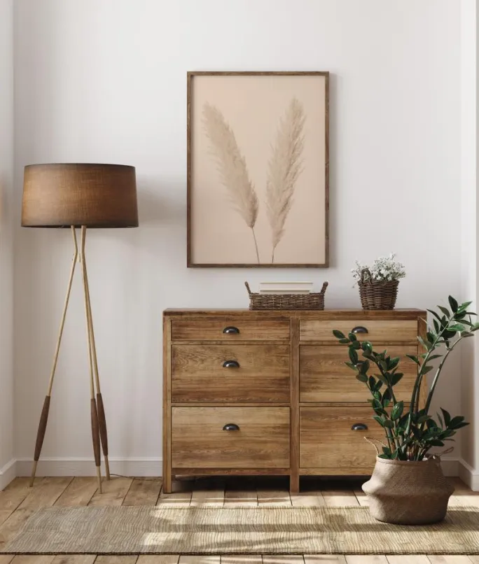 Nærbilleder af to hoveder af pampasgræs. De dæmpede pastelfarver og rosa farver på dette billede fremhæver virkelig græssets lethed, og du kan føle roen bølge, når du betragter det.