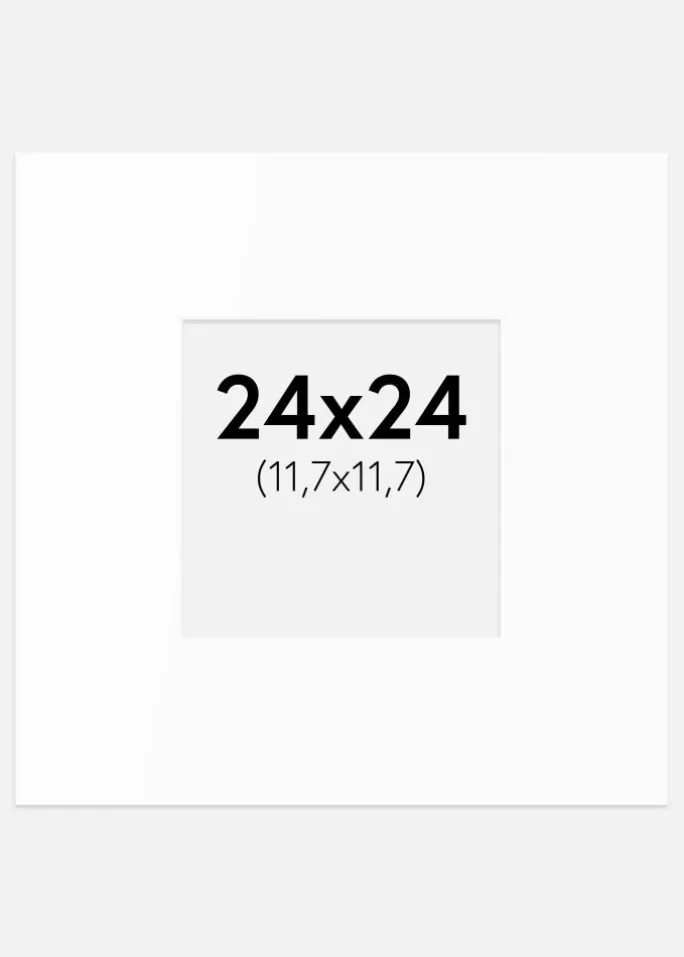Giv dine billeder og kunstværker den indramning, de fortjener, med vores elegante hvide passepartout. Denne passepartout er designet til at passe billeder i størrelsen 12,7×12,7 cm (5×5 inches) og har et ydre mål på 24×24 cm. Med sin bløde hvide nuance og skrå indre kant skaber den en stilfuld indramning, der fremhæver motivet på en sofistikeret måde.